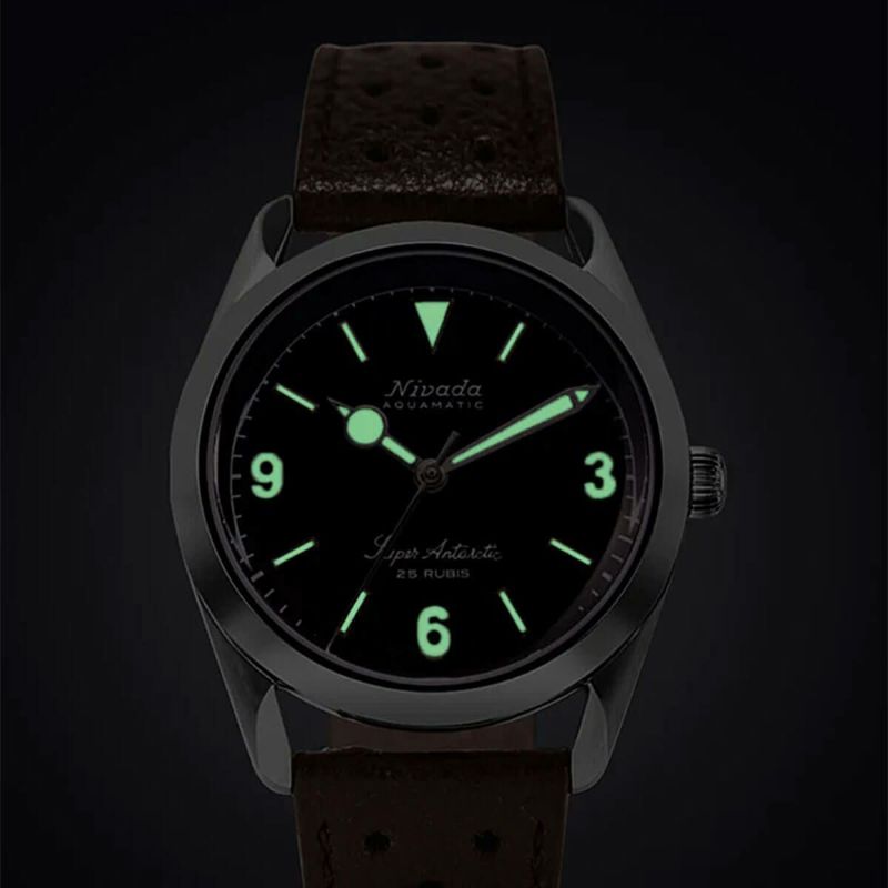 スイスのグレンヒェンで設計・製造されたスーパーアンタルクティックは、そのルーツを忠実に受け継いでいます。スーパーアンタークティックは、スイス製ソプロッドP024 3針自動巻きを搭載しています。ニヴァーダ・グレンヘンの時計はすべてスイス製です。100m(10気圧)防水とねじ込み式リューズを備え、液体であれ固体であれ、どんな水にも対応できます。