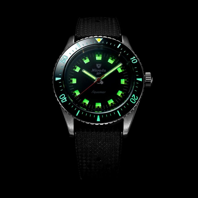 1960年代後半に登場した、知る人ぞ知るダイバーズウォッチを現代に甦らせた「Aquamar(アクアマー)」コレクション。Nivada Grenchenが誇る南極探検シリーズ“Antarctic”の血統を受け継ぎながらも、クラシックな魅力とプロフェッショナル仕様を併せ持つ、実用性と収集価値を兼ね備えたタイムピースです。