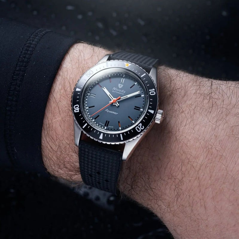 1960年代後半に登場した、知る人ぞ知るダイバーズウォッチを現代に甦らせた「Aquamar(アクアマー)」コレクション。Nivada Grenchenが誇る南極探検シリーズ“Antarctic”の血統を受け継ぎながらも、クラシックな魅力とプロフェッショナル仕様を併せ持つ、実用性と収集価値を兼ね備えたタイムピースです。
