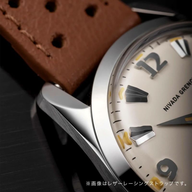 Nivada Grenchen / ニバダ グレンヒェン アンタークティック 35mm エッグシェル ベージュ ブラウン レザー ストラップ ホワイト ステッチ