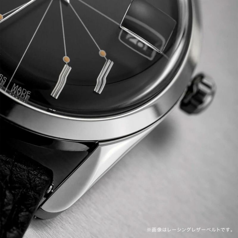 ダブルドーム型のサファイアクリスタルの下には、素晴らしいシルバーまたはブラックのダイヤルがあり、完全に織り込まれた8本の蜘蛛の脚が見えます。サンレイシルバーやブラックのダイヤルには縦に8つのインデックスが配置され、文字盤の中心に向かって収束する8本の線(蜘蛛の脚のように見えるため、時計の愛称となっています)によって接続されています。