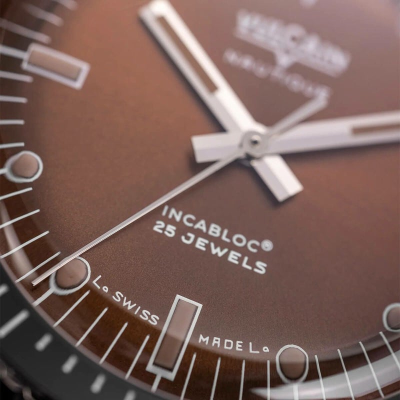VULCAIN / ヴァルカン スキンダイバー ノーティック スチールケース スチールフルケースバック ブラウンダイヤル ラバーストラップ