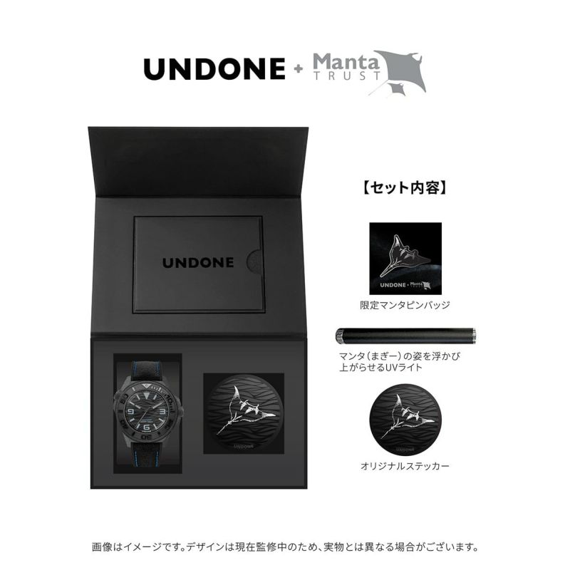 UNDONEは、海洋保全団体「The Manta Trust」とコラボレーションし、日本におけるマンタ保護活動「Japan Manta Project」を支援しています。この特別な取り組みをきっかけに、UNDONE初のカーボン製ダイバーズウォッチ「Aqua Carbon Maggy」が誕生しました。