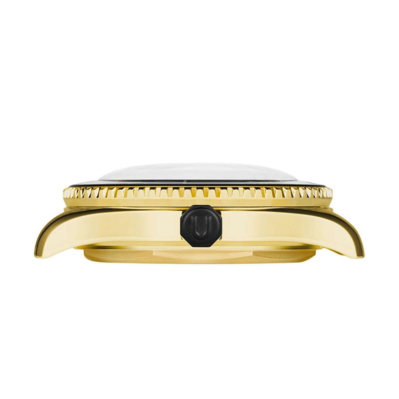 また、316Lステンレス製の40mmケースは耐腐食性・耐摩耗性に優れ、快適さと大胆さを兼ね備えています。LEXANポリカーボネートレンズは衝撃に強く、優れた耐久性を誇ります。