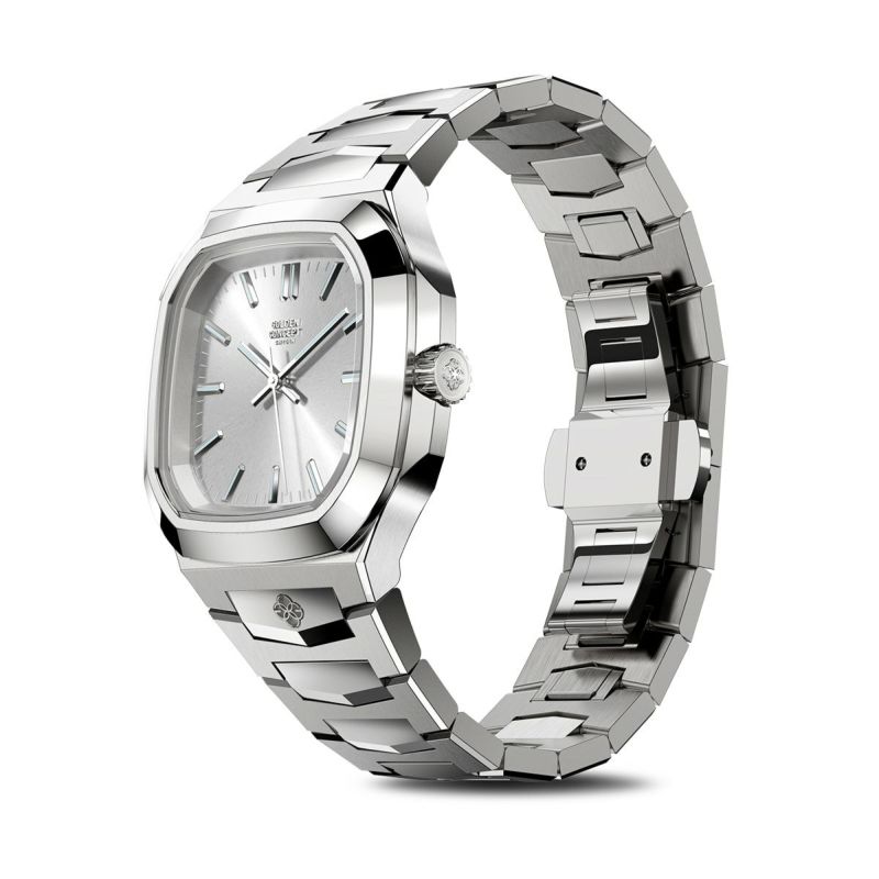 ケースとベゼルには、高級時計にも採用される904Lステンレススチールを使用。深い鏡面仕上げが美しさを長く保ち、100m防水の実用性も備えています。