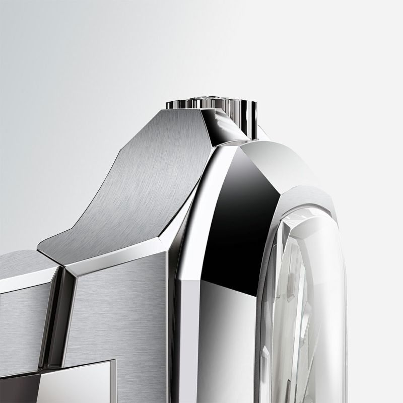 中央から放射状に広がるサンバースト仕上げのダイヤルは、光を柔らかく捉えながら、角度によって澄んだ陰影を描写。淡く明るいグレートーンが、腕元に軽やかさと都会的な洗練をもたらします。ファセット加工された立体的なアワーマーカーと、ブルートーンのスーパールミノバにより、昼夜問わず高い視認性を確保しています。