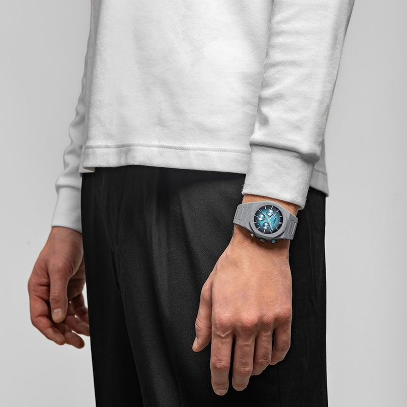 マットなケースが色のコントラストを際立たせ、手元に内なるヒーローの気分を呼び起こします。透明感のあるアイスブルーがクリーンで未来的な印象を演出。カラーを引き立てるディテールとして、プッシュボタンの差し色など細部にもアクセントを配置。軽量な着け心地のまま、色で遊べるコレクションです。