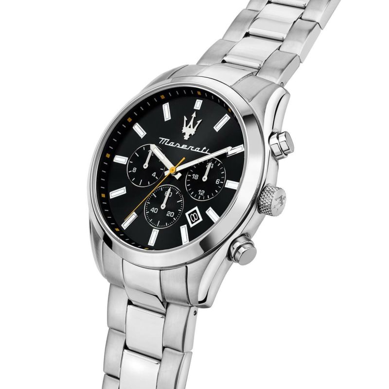 Maserati / マセラティ アトラツィオーネ 43mm マルチファンクション ブラック ダイヤル シルバー ブレスレット