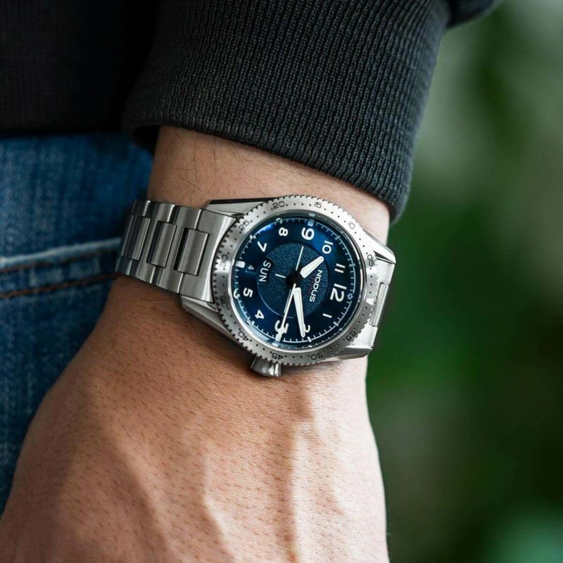 航空時計を現代解釈したセクターパイロット。大きく記載されたインデックス、瞬時に日付と曜日を確認できる大きな窓、カウントダウンベゼルなど主要な機能を搭載している。