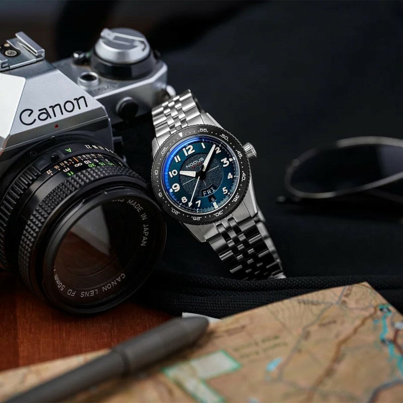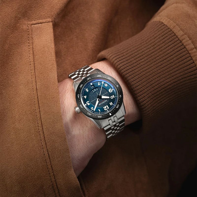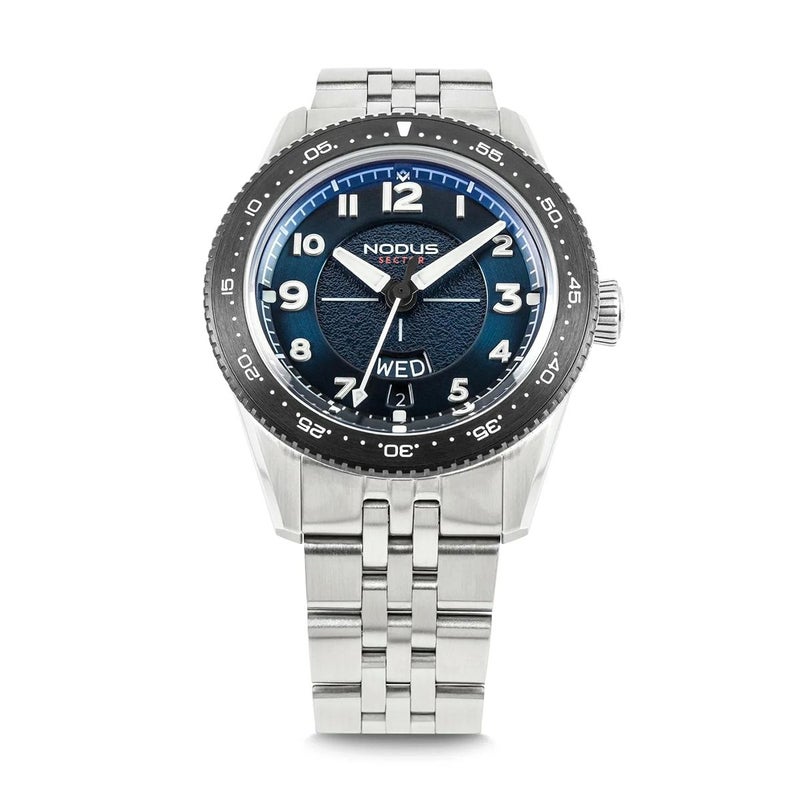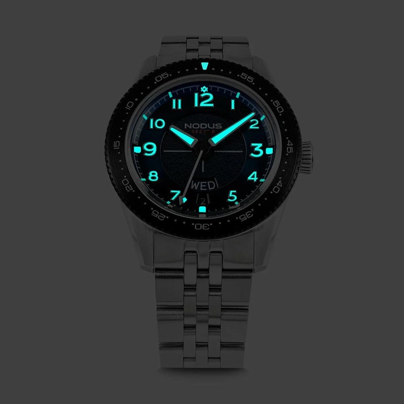 Sector IIシリーズでは、ケースとサファイアクリスタルを全面的に再設計。厚さは 11.7mm に抑えられ、Seiko NH系ムーブメント搭載モデルとしては非常にスリムなプロポーションを実現しています。それでいて、100m防水性能を確保。日常使いから移動の多いシーンまで、安心して着用できます。