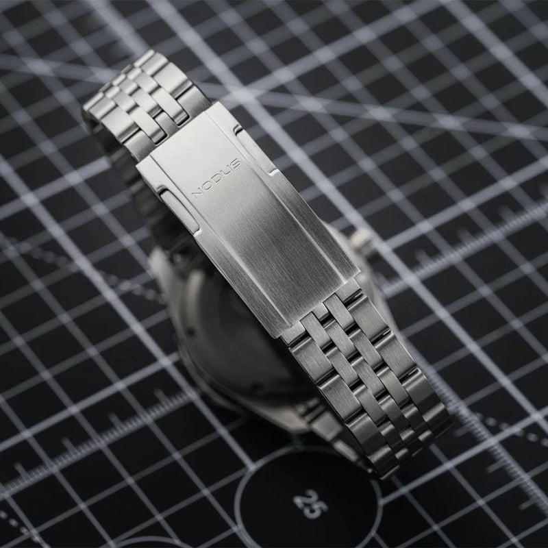ブレスレットには、装着感と安定性に優れる Pentalinkブレスレットを採用。クラスプには、独自開発の Nodus Extension 調整機構を搭載しています。ボタン操作で4段階の微調整が可能で、腕周りの変化にも即座に対応。長時間の着用でも快適なフィット感を保ちます。