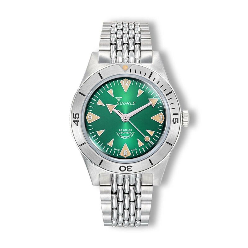 スイス・キアッソ発のダイバーズウォッチブランド「SQUALE(スクワーレ)」。 フランス語でサメを意味する同ブランドは1945年にスイス・ヌーシャテルでシャルル・フォン・ビューレン氏により、時計パーツのサプライヤーとして創立され、今では名だたるブランドのケース製造に携わってきた。やがて、ダイバーズウォッチに焦点を置き、オリジナルの時計を作り始めるようになる。そして世界で初めての1,000M防水時計を完成させた。 かの有名なダイバー、ジャック・マイヨール氏が1970年に伊豆半島沖が水深76mのフリーダイビングを成功させたときに使用していた時計もSQUALEだった。有名な時計ブランドのような華やかな歴史はないが、ダイバーズウォッチの質と基準を確立した代名詞となっている伝説のダイバーズウォッチブランド。現在のSQUALEは1970年代のデザインからインスピレーションを得ているものが多く、古き良きデザインを継承しつつ、ブランドのアイデンティティとも呼べる防水性、高品質な外装をしっかりと現代まで引き継いでいる。