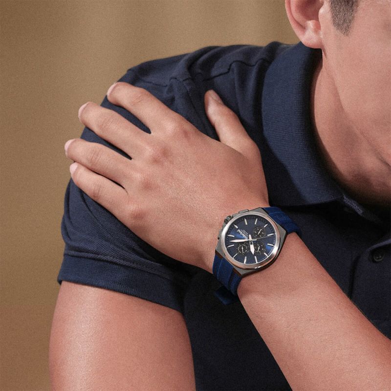 シンプルでありながら、視認性の高い文字盤やユニークなディテールがアクセントとなり、無骨さと洗練さが共存しています。レザーやラバーのストラップが特徴的で、どんなシーンにもマッチするスタイリッシュな仕上がりです。ファッション性と機能性が見事に調和し、頼れる一本に仕上がっています。