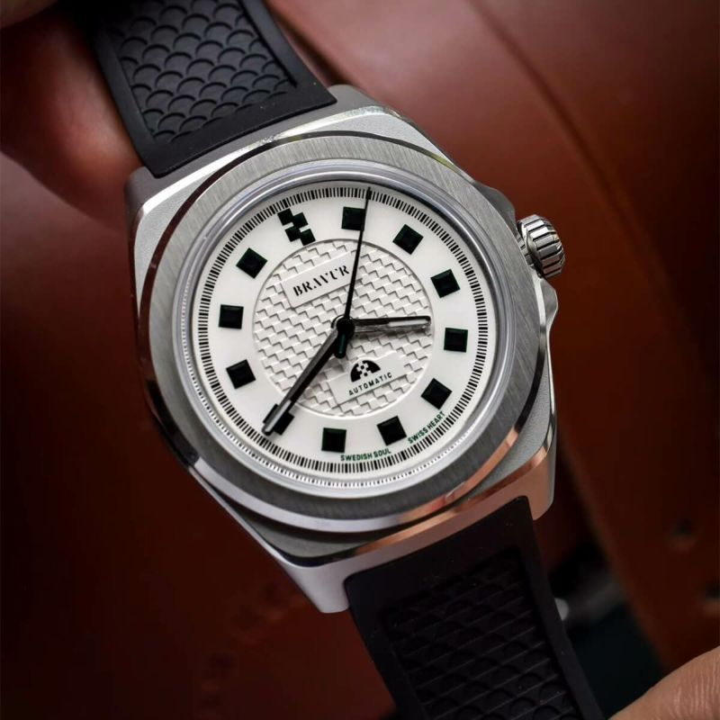 2011年ストックホルムで誕生した独立系ブランド BRAVUR。北欧の自然美とインダストリアルデザインを融合し、素材選びから妥協のない美しい造形が特徴。すべてのパーツを独自設計し、スイスで生産するこだわりのマイクロブランドです。