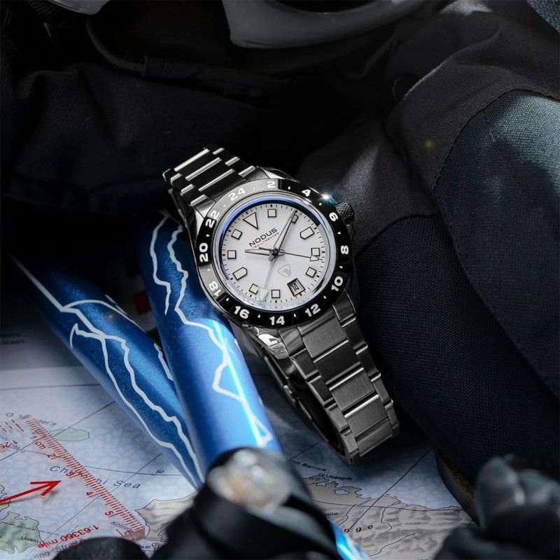 TrailTrekker ? A.C.T. は、アメリカ・ロサンゼルスで設計・組立。NODUSとRaven、2つのブランドの哲学が交差したこのモデルは、旅と冒険を本気で楽しむ人のためのGMTウォッチです。