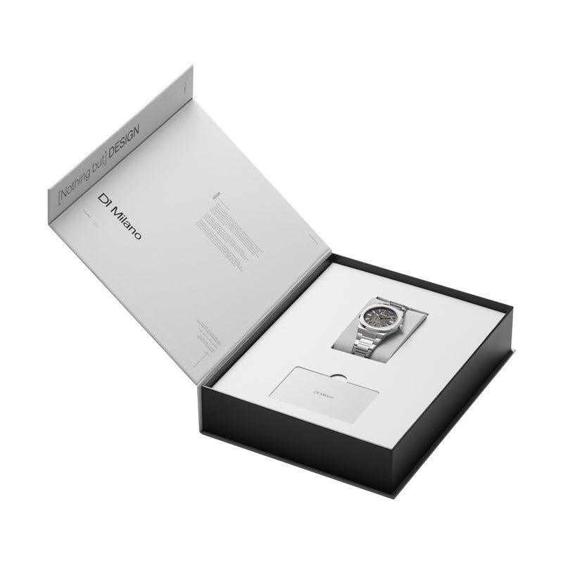 ブランドのシグネチャーモデルであるULTRA THINコレクション。ミニマルな造形を軸としながら、今回のモデルではシリーズとして初めてダイヤルにデザイン要素を加えました。外周リングやインデックスにグラフィック表現を取り入れることで、角度によって表情が変わる立体感を生み出しています。ブレスレット一体型ケースによるシャープなシルエットはそのままに、カラーとグラフィックの組み合わせによってそれぞれのモデルに個性を与えたアップデートモデルです。
