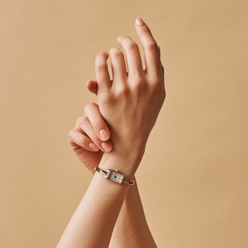 手首にすっと馴染むコンパクトなサイズ感は、華奢でありながら確かな存在感を演出します。