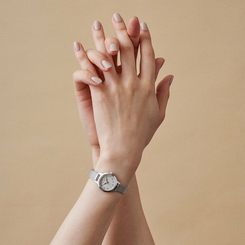 「清月」の持つ神秘的な透明感と静寂からインスピレーションを受け、21.5mmの小ぶりなラウンドケースを採用。