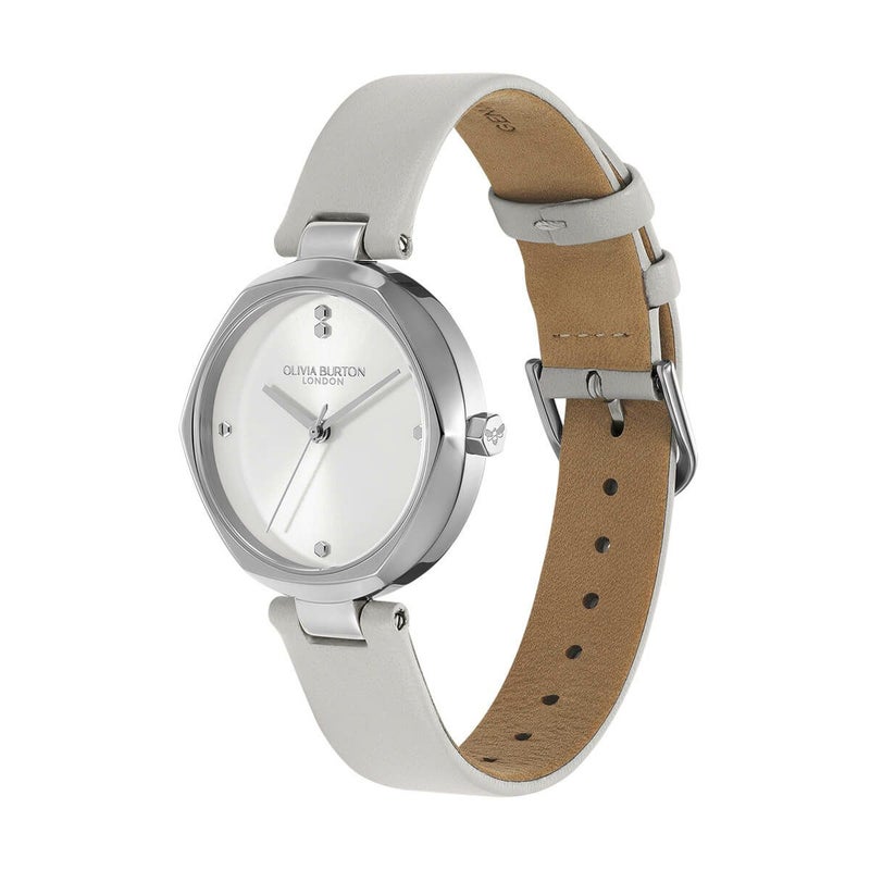 OLIVIA BURTON / オリビア・バートン クラシック 32mm ディメンション シルバー ホワイト サンレイ アールグレイ レザー
