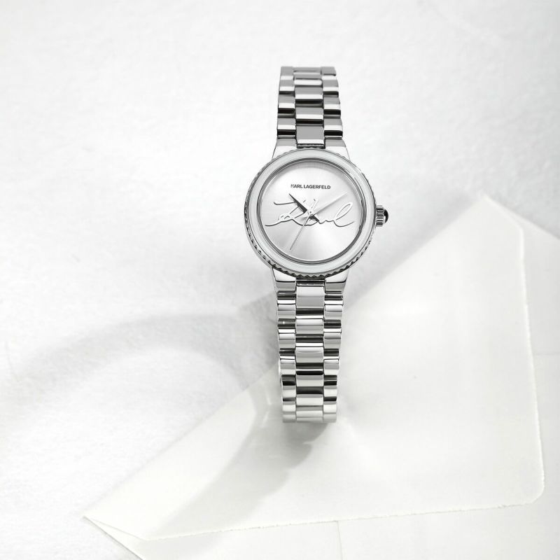 KARL LAGERFELD / カール・ラガーフェルド カイザー シルバー サンレイ シグネチャー ダイヤル シルバー ブレスレット