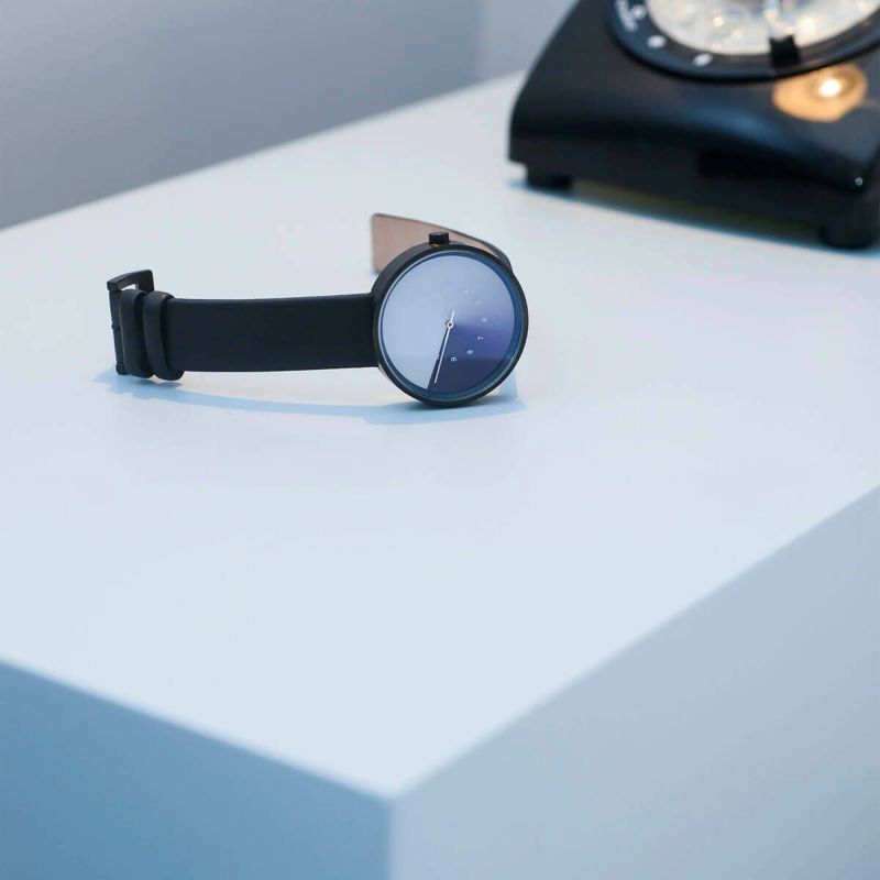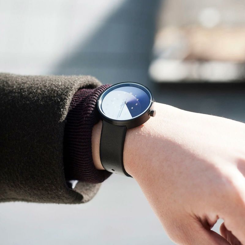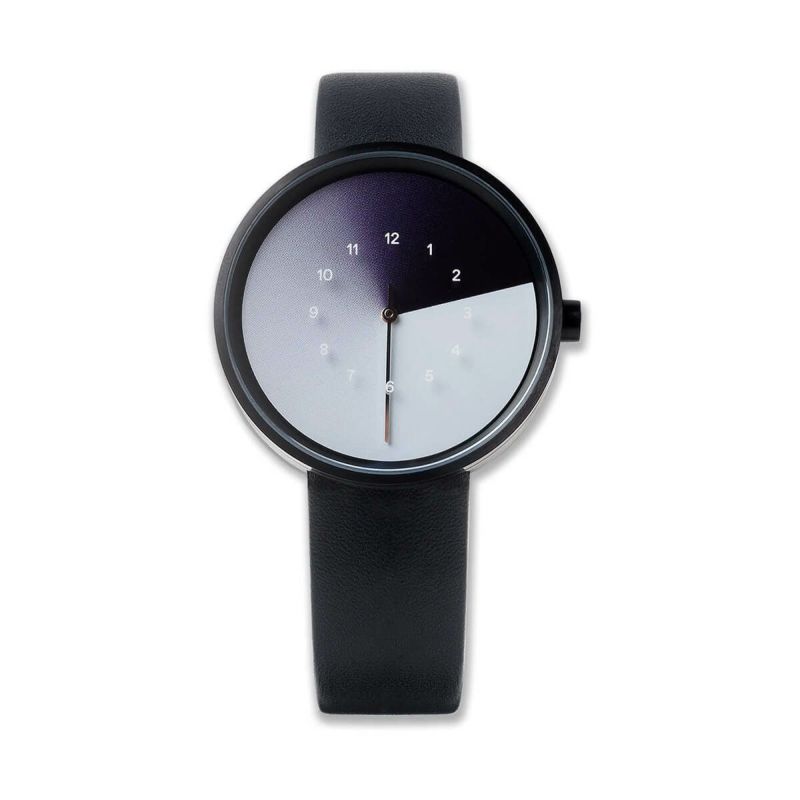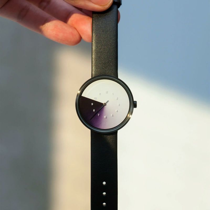 3つの異なるカラーバリエーションで提供されるこのデザイナーウォッチは、特徴的なグラデーションが際立っており、「白い時刻の数字がガラスの上に印刷された状態から徐々に現れていきます。デザインの暗い部分が時刻の下を通過するたびに、各時刻がその影の中から姿を現し、グラデーションが再び白に戻るとゆっくりと消えていく様子は、まさに芸術的な美しさです。