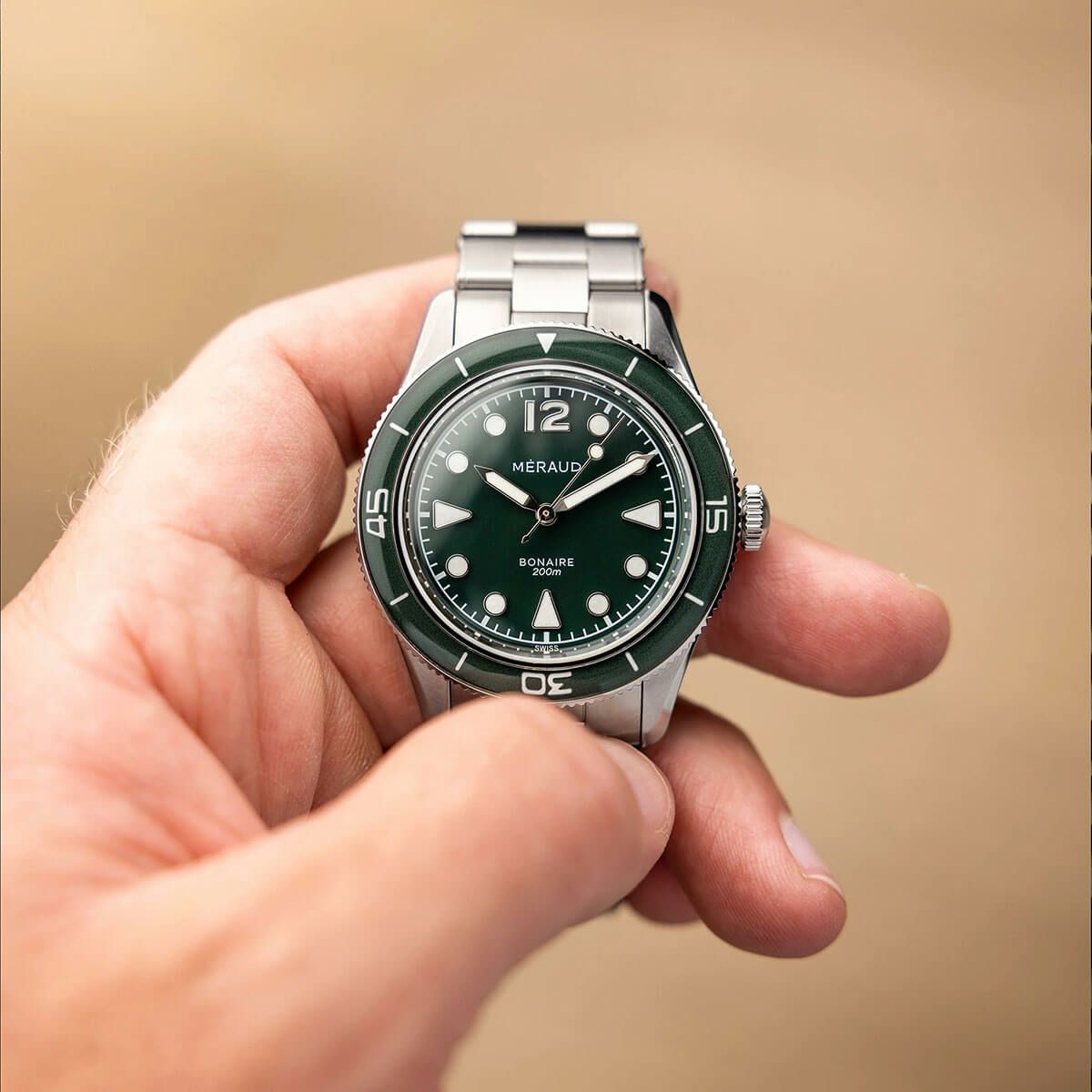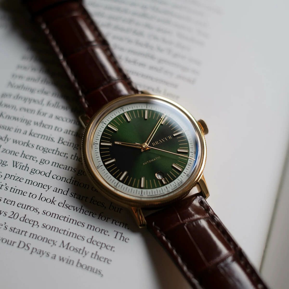 Sold out. 他の画像を見る Bravur Watches / ブラヴァ BW003 Bottle Green dial Gold PVD Brown contrast stitching leather sapphire back ¥ 292,600 税込