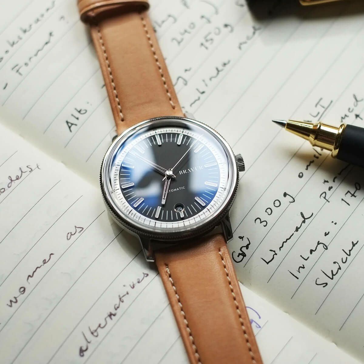 Sold out. 他の画像を見る Bravur Watches / ブラヴァ BW003 Black dial Brown edge seam leather sapphire back ¥ 286,000 税込
