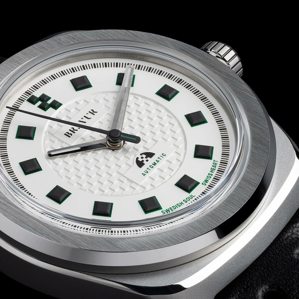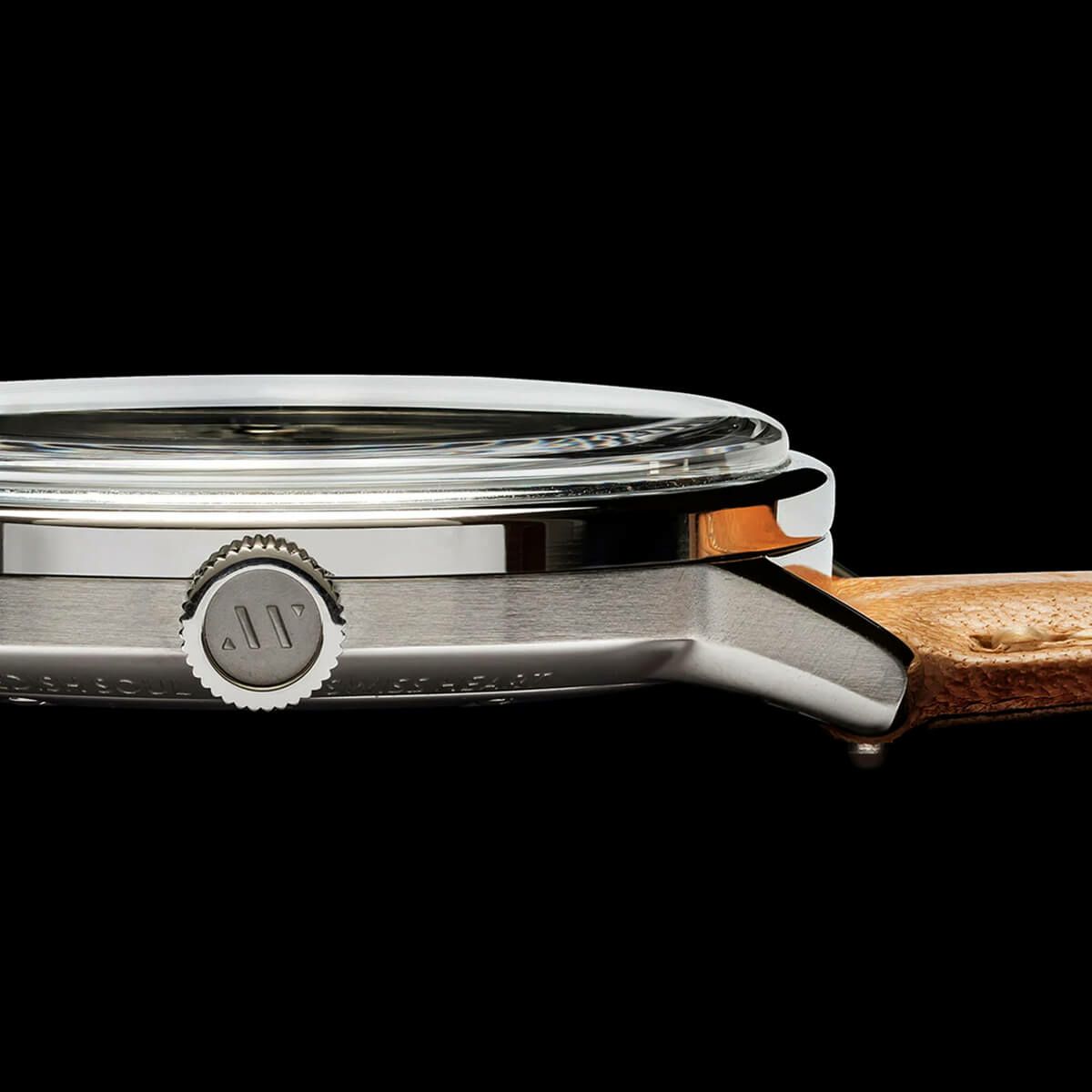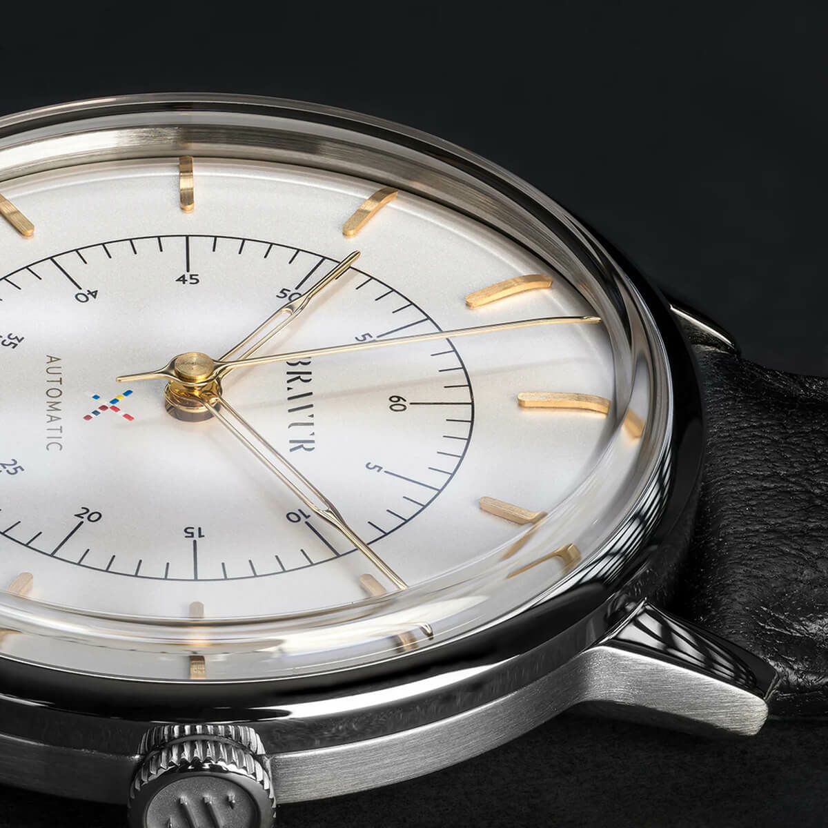 Sold out. 他の画像を見る Bravur Watches / ブラヴァ Scandinavia Sparkling White dial Brown edge seam leather sapphire back ¥ 272,800 税込
