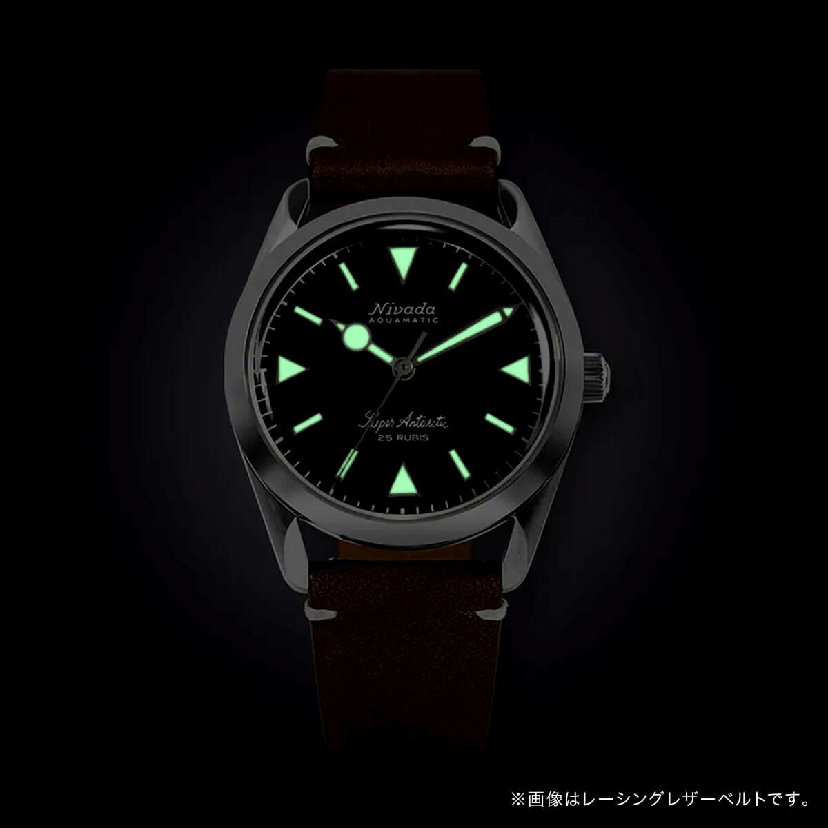 Sold out. 他の画像を見る Nivada Grenchen / ニバダ グレンヒェン スーパー アンタークティック 35mm ブラック ベージュ ルミノバ ブラック レザー ベルト ¥ 159,500 税込