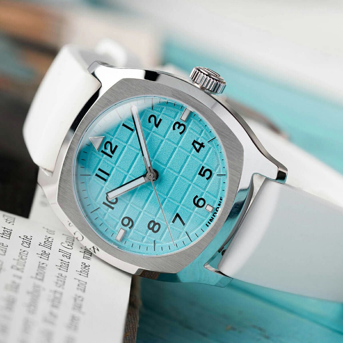 Sold out. 他の画像を見る OLIVIA BURTON / オリビア・バートン シグネチャー 36mm ドッグウッド T バー シルバー ホワイト ブラッシュ レザー ストラップ ウォッチ ¥ 24,200 税込