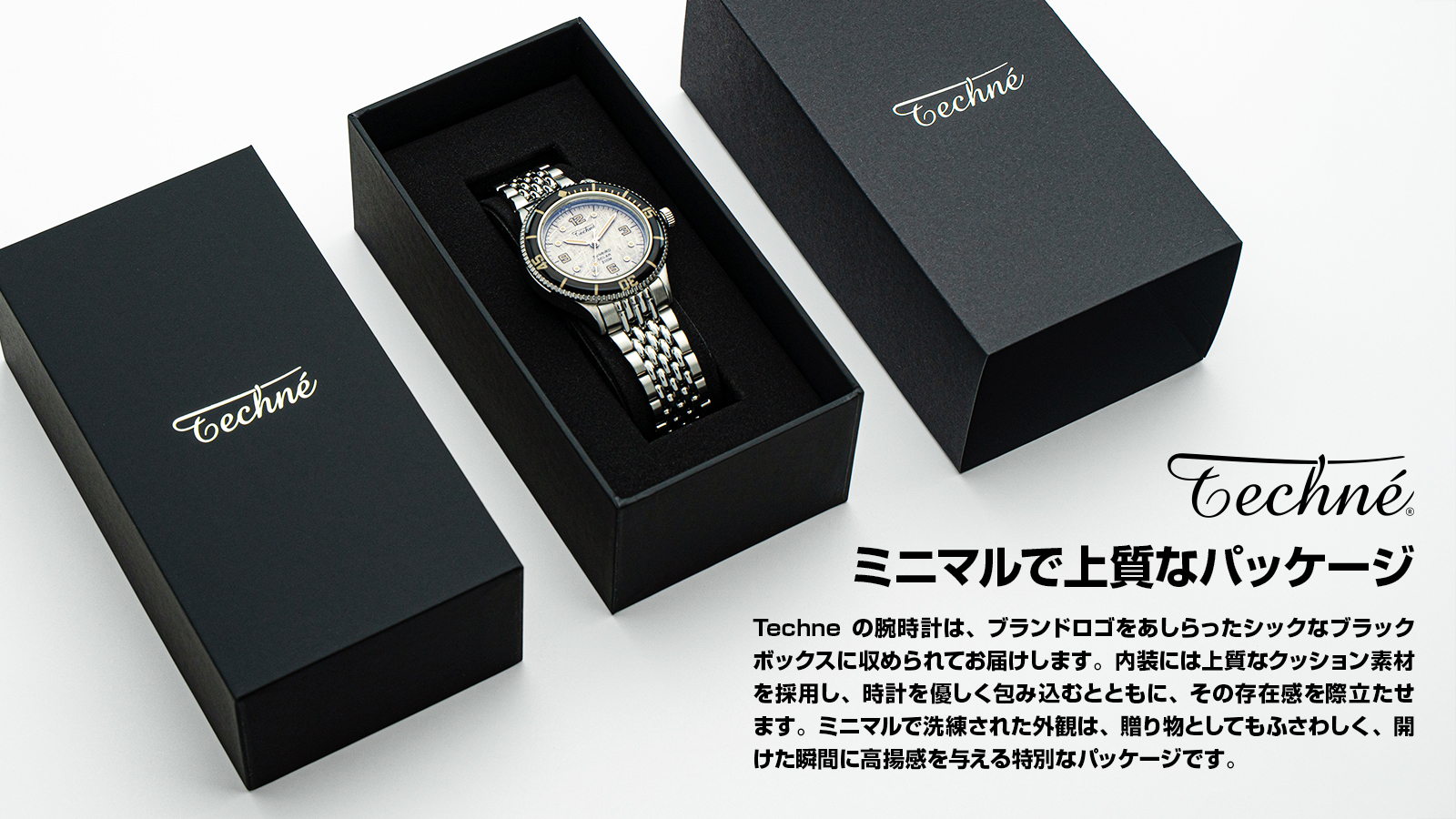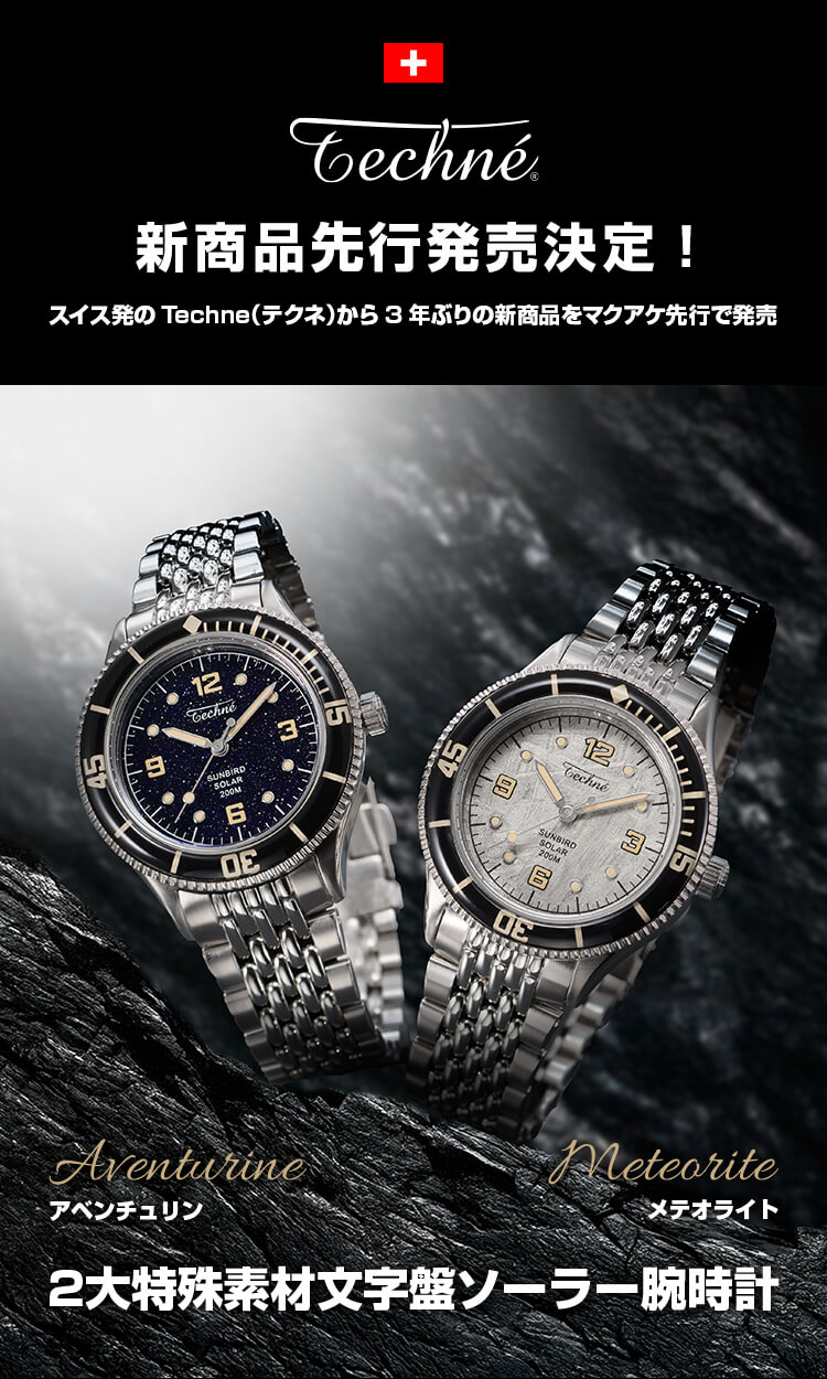 “技術”と“美意識”を融合した、ファッションミリタリーウォッチ。「テクネ(Techné)」とは、古代ギリシャ語で“技術”や“ノウハウ”を意味する言葉。その名の通り、テクネは機能美と精密性を追求する姿勢から生まれました。ブランドのデザインルーツは、創業者の曾祖父がかつてパイロットであったという背景にあります。オールドミリタリーウォッチの耐久性・実用性・信頼性を軸にしながら、現代のファッションに溶け込むデザインへと昇華。スイスで設計され、アジアで製造することで、高品質ながらアフォーダブルな価格帯も実現しています。ただの時計ではない、ストーリーを纏う道具として。テクネは、過去と現在をつなぐ“技術の美学”を体現しています。