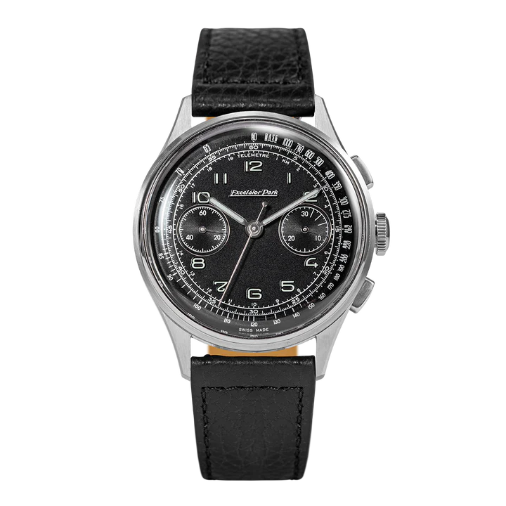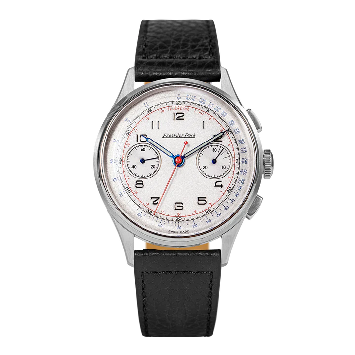 「エクセルシオパーク」は1866年にスイスのサン・ティミエで創業したクロノグラフ専門メーカー。名だたるブランドのムーブメントを製造していた経歴もあり、耐久性の高いムーブメントが搭載された当時のオリジナルモデルは、いまだ多くの時計マニアから支持を受けて絶大的な人気を誇っている。しかし、クオーツショックの煽りを受け、惜しまれつつも1度ブランドの歴史に幕を閉じた。