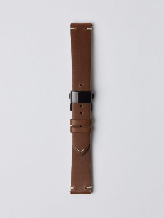 繊維密度が高く、耐久性に優れたブッテーロレザー。ひと針ずつ刻まれたステッチが、クラフトの繊細さと力強さを感じさせる。それぞれDバックルを採用し着脱いやすい仕様に。このベルトもまた、時を経ることで美しくなっていく。