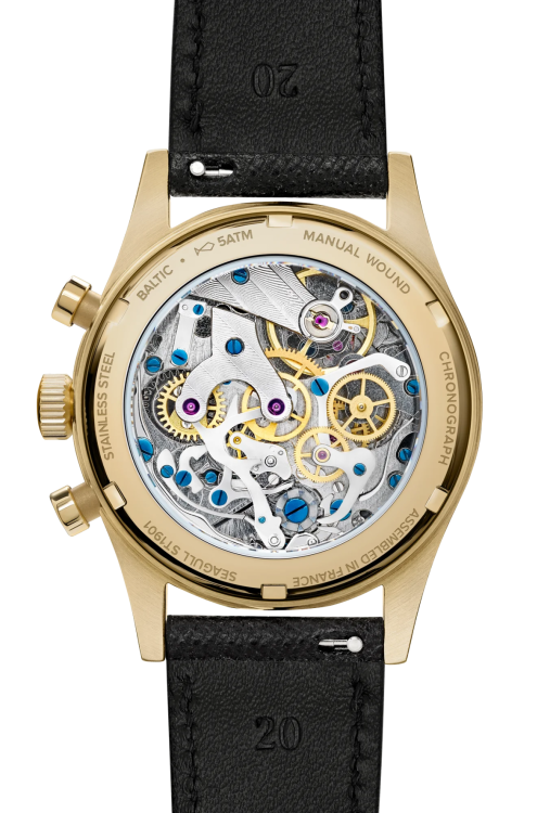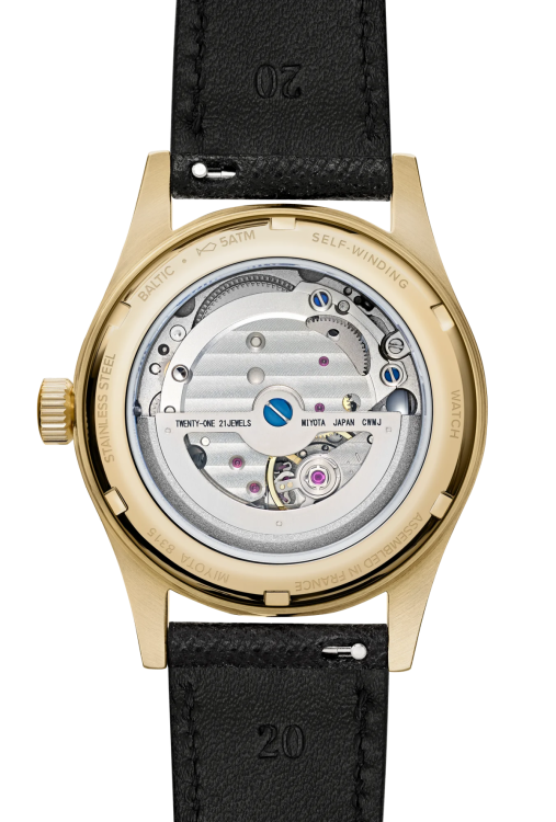 『MR01』は、香港製のマイクロローターを搭載することでガラスを含めた9.9mmの極薄ケースを実現。クラシックスタイルに落とし込み、バルチックの世界観を体現している。小ぶりな36mmのケース径で男女共に着用しやすいサイズ感に仕上げた。ブレゲ数字のインデックスと現代的なデザインが独自性を与えるドレスウォッチとなっている。独立して存在感を放つスモールセコンドを7時位置に配置し、ギョーシェ彫りを施したきめ細かい文字盤と際立ったコントラスト、リーフ型の分針が拘りを感じさせ、ケースバックをシースルーにすることで、その駆動の美しさを堪能することもできる。