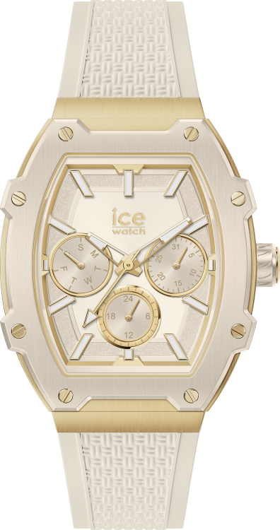 2007年の誕生以来、常に大胆な一手で世界中にカラフルウォッチを届けてきたアイスウォッチが、このたびエレガントな高級時計のコードに挑戦する。新型モデル「アイスボリデイ」は、アイスウォッチのDNAである楽観主義と自由な解釈で構築される。一目で印象に残る独特な"トノー型"のケースは、見事な曲線美を持ち、近年のファッションウォッチマーケットでは前例のない形状。軽量で絶妙な発色のアルミ製ケースはスチール製のネジで飾られ、奥行きのある文字盤には、スケルトンの針、日付・曜日・24時間計のサブダイアルを配し、日本製の多機能ムーブメント「Miyota 6P29」を搭載する。