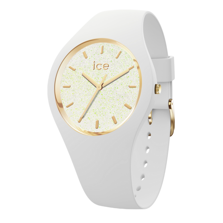 「アイス グリッター」はキラキラと輝くグリッターダイアルが特徴の腕時計。アイスウォッチストア限定となるケース径37mmの「ホワイトインフィニティ」は、オールホワイトのケース&ベルト一体型のシリコンラバーに、まるで無数の星屑が集まっているかのような煌びやかなホワイトベースのグリッター文字盤をセット。イエローゴールドのステンレスパーツをアクセントにバーインデックスを採用して、エレガントな雰囲気に仕上がっている。また、パステルカラーをベースにしたケース径31mmの「ピンクコズミック」「ライラックコズミック」は文字盤のグリッターが色鮮やかな3色のグラデーションに。アラビア数字のインデックスで視認性も高く、愛らしく柔らかな印象を与えてくれる。どちらも10気圧防水。価格は¥17,600円(税込)。
