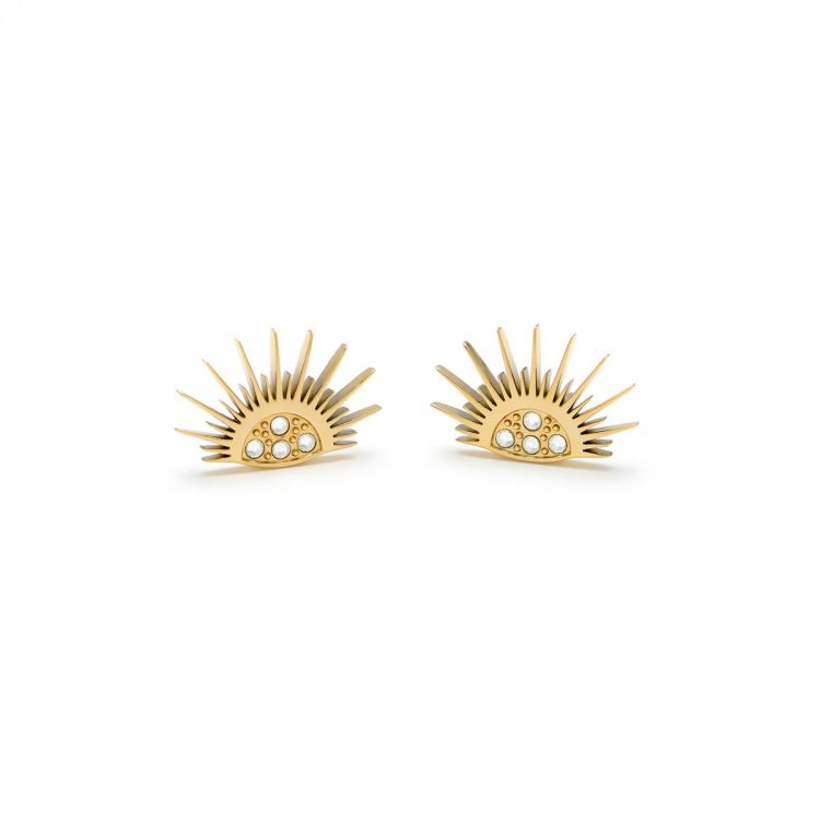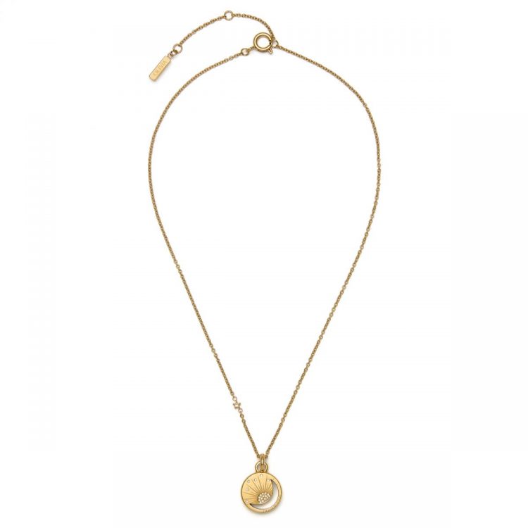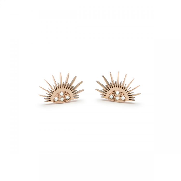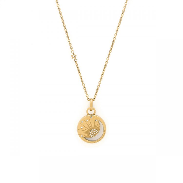 新作アクセサリー「セレスティアルサン」は、美しい天体をイメージしたネックレスとピアスのコレクション。ネックレストップには輝かしい太陽、切り抜かれた三日月、そしてクリスタルの星々が組み合わさり、昼から夜へと移り変わる空を表現している。華奢なチェーンには小さな星があしらわれ、アクセントとなっている。ピアスは、日の出をモチーフにした繊細デザインで、4石のクリスタルが輝き、耳元を華やかに演出する。カラーはネックレス・ピアスともにローズゴールド、ライトゴールド、シルバーの3色展開。価格は、ローズゴールドとライトゴールドのネックレスが¥19,800円(税込)、シルバ―のネックレスが¥16,500円(税込)。ローズゴールドとライトゴールドのピアスが¥9,900円(税込)、シルバ―のピアスが¥8,800円(税込)。