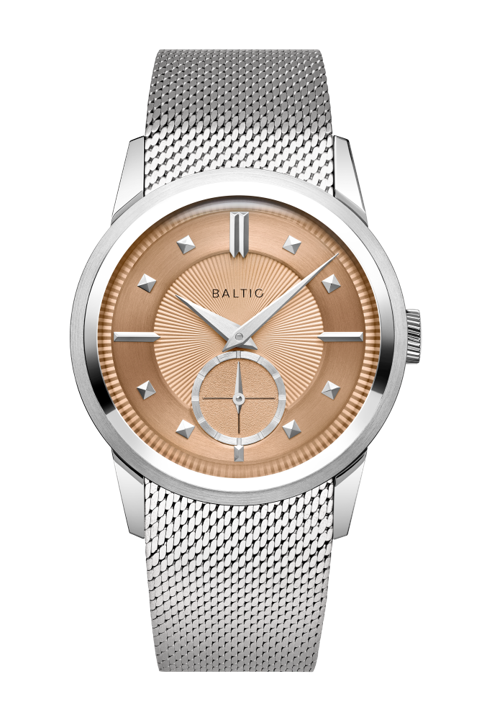 ムーブメントはスイスETA製の機械式ムーブメントであるPeseux 7001キャリバーを搭載し、42時間のパワーリザーブを誇る。ケースバックはサファイアガラスを装備しており、キャリバーの美しい躍動感を堪能することが出来る。ムーブメントは厚さわずか2.5mmで、時計全体のプロファイルは驚くほど薄くエレガントな9.2mm(ガラスなしで7.4mm)を誇り、BALTICのコレクションの中でも最も薄いコレクションとなる。新しいエレガントで快適なメッシュブレスレットの美しさをさらに引き立てるため、ブラッシングされた編み込みステンレススチールブレスレットを採用。このメッシュは時計のケースと手首の曲線に完璧に一致し、その細かく柔軟なメッシュによって快適な着用感を提供する。スライド式クラスプで工具なしで簡単に調整でき、クイックリリースシステムにより簡単に取り付け・取り外しが可能に。