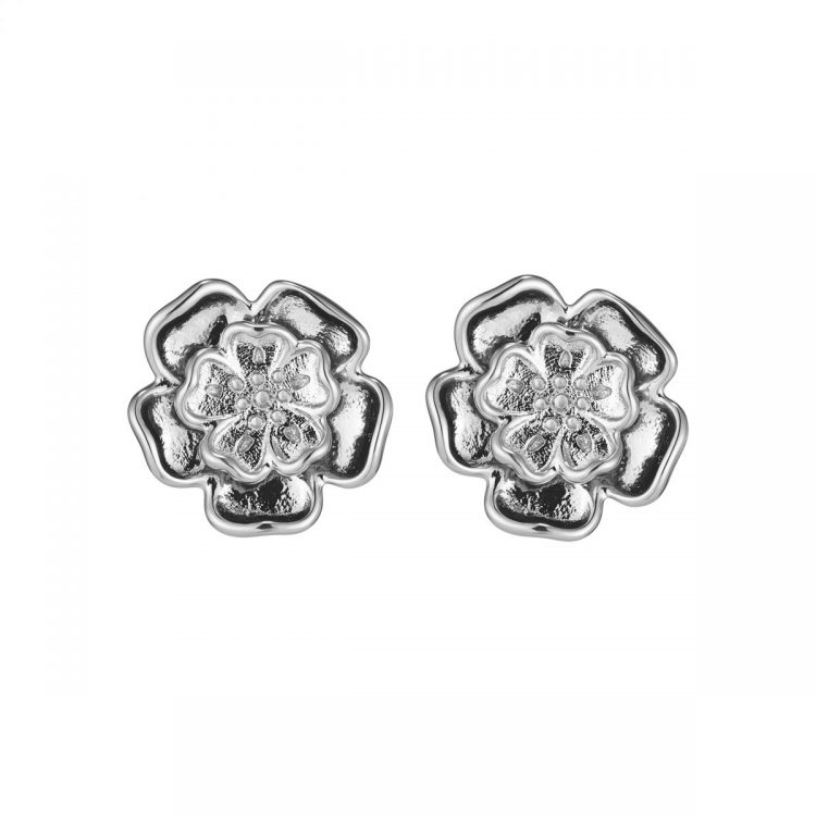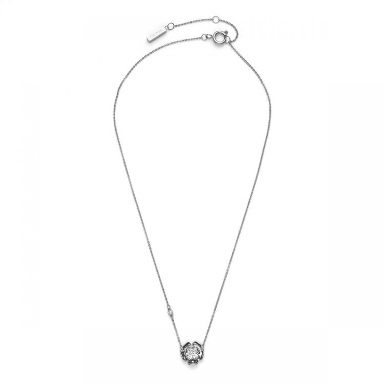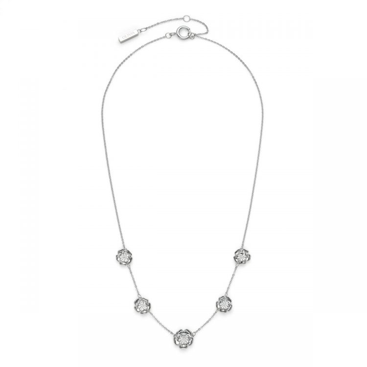 英国の伝統的な紋章からインスパイアされた繊細な花のモチーフが印象的な「チューダー・ローズ」コレクション。ネックレスは印象的なチューダー・ローズがシンプルに中央に1輪あしらわれたタイプがシルバー・ゴールド・ローズゴールドの3色展開。チェーンには1粒のクリスタルが施され、単体でも重ね付けでも楽しめる。また、華やかに5輪があしらわれたマルチタイプはシルバーのみをラインナップする。ブレスレットはシルバー・ゴールド・ローズゴールドの3色展開で、3輪のチューダー・ローズが手元を華やかに演出する。スタッズタイプのピアスも他のアイテムとの組み合わせがしやすい3色展開で、繊細な花びらが美しく華やかなアイテム。