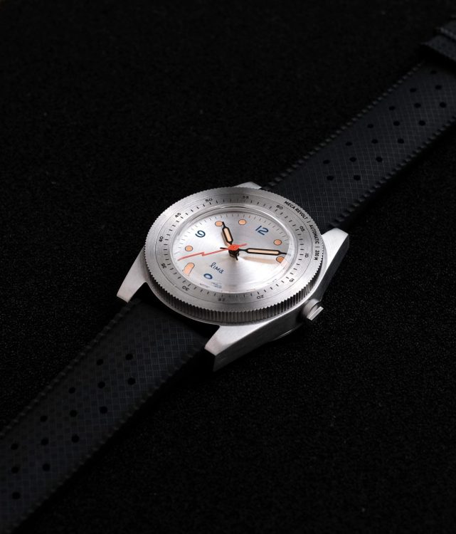 革新的なデザインとクラシックな機械式時計の技術が融合したモデル。メカリヴォルトは、ブランドのデザイン哲学であるシンプルさと耐久性を反映しつつ、現代的なアプローチを取り入れたユニークなタイムピース。最大の特徴はシルバーとブラックの2つのベゼルが付属され簡単に付け替えが。針とインデックス部分にはダークグレーの蓄光塗料を採用し、視認性を高めている。