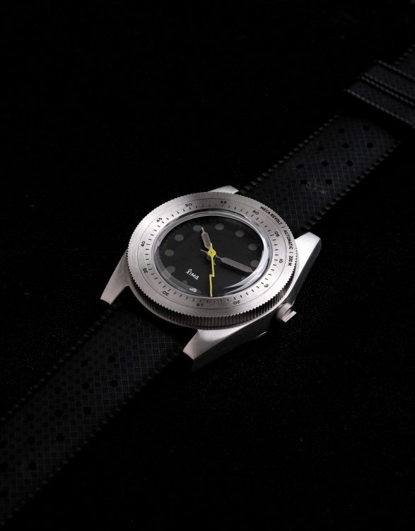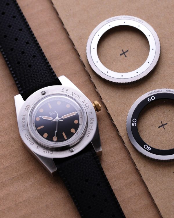 「Meca Revolt(メカ・リヴォルト)」は、クラシックな外観と現代的な機能が融合した一品。日本製の自動巻きムーブメントを搭載し、シルバーベゼルとブラックベゼルを交換可能。さらに、ダークグレーの蓄光塗料が視認性を高める。
