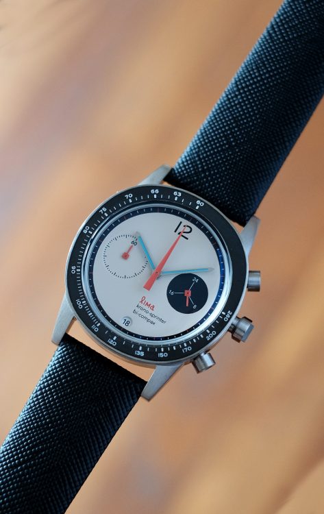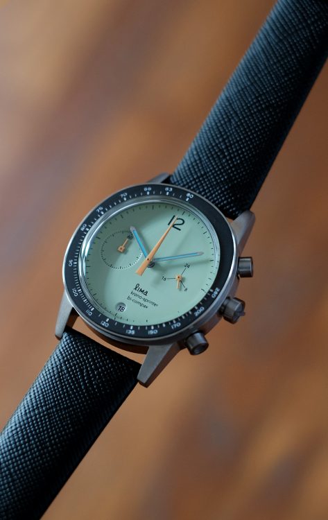ブランドのデザイン哲学と美学を反映したタイムピースであり、バウハウスのシンプルなデザインと、ディーター・ラムスのモダンなデザインスタイルにインスピレーションを受けている。クロノスプリンターは、モダンさとヴィンテージ感の両方を兼ね備えた時計で、特にリマウォッチのユニークな「スクワークル」(四角と円の融合)デザインが大きな特徴。ムーブメントにはメカクオーツを搭載し、クオーツながらも自動巻きのような運針が可能に。
