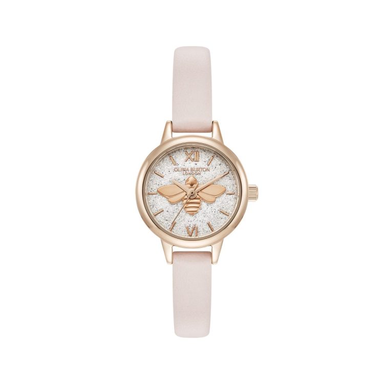 幸運を運ぶオリビア・バートンの象徴的な蜂モチーフが輝く「ラッキービー」コレクション。グリッターが美しく輝く文字盤に繊細なエッチングが施され、上品で華やかな存在感を放ちます。
