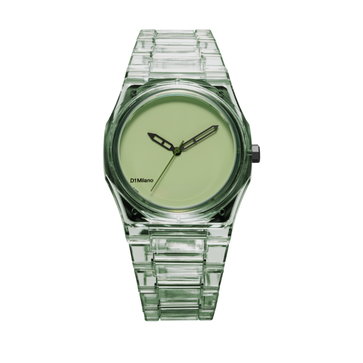 今季の「NYLON」は、“透け感”を大胆にデザインへ落とし込んだ意欲作。中でも最大の注目は、あえて内部構造を見せた「透明ナイロン製ブレスレット」です。これまで隠されていたピン構造をデザインに昇華し、ミニマルなルックスにテクニカルなエッジをプラス。軽やかな見た目と、肌と一体化するような装着感を両立しました。カラーは、春夏スタイルに抜け感を添える3色展開。澄んだ空を思わせる「リビエラ」、爽やかで柔らかな「ミント」、そして凛とした深みの「コバルト」。どの色も、シーズンムードを引き立てながらスタイリングに軽快なアクセントを加えてくれます。文字盤は装飾を排したマット仕上げ。そこにブラックスチールの針が力強く走り、センターで静かに、しかし確かな存在感を放ちます。クリーンかつ大胆なこの一本は、ストリートにもモードにも映えるジェンダーレスな佇まいです。D1 MILANOが提案するのは、“静かに主張する”存在感。ナイロン素材の快適さと、緻密なディテール。どちらも妥協しないこのモデルが、今シーズンの新しいスタンダードになる予感です。