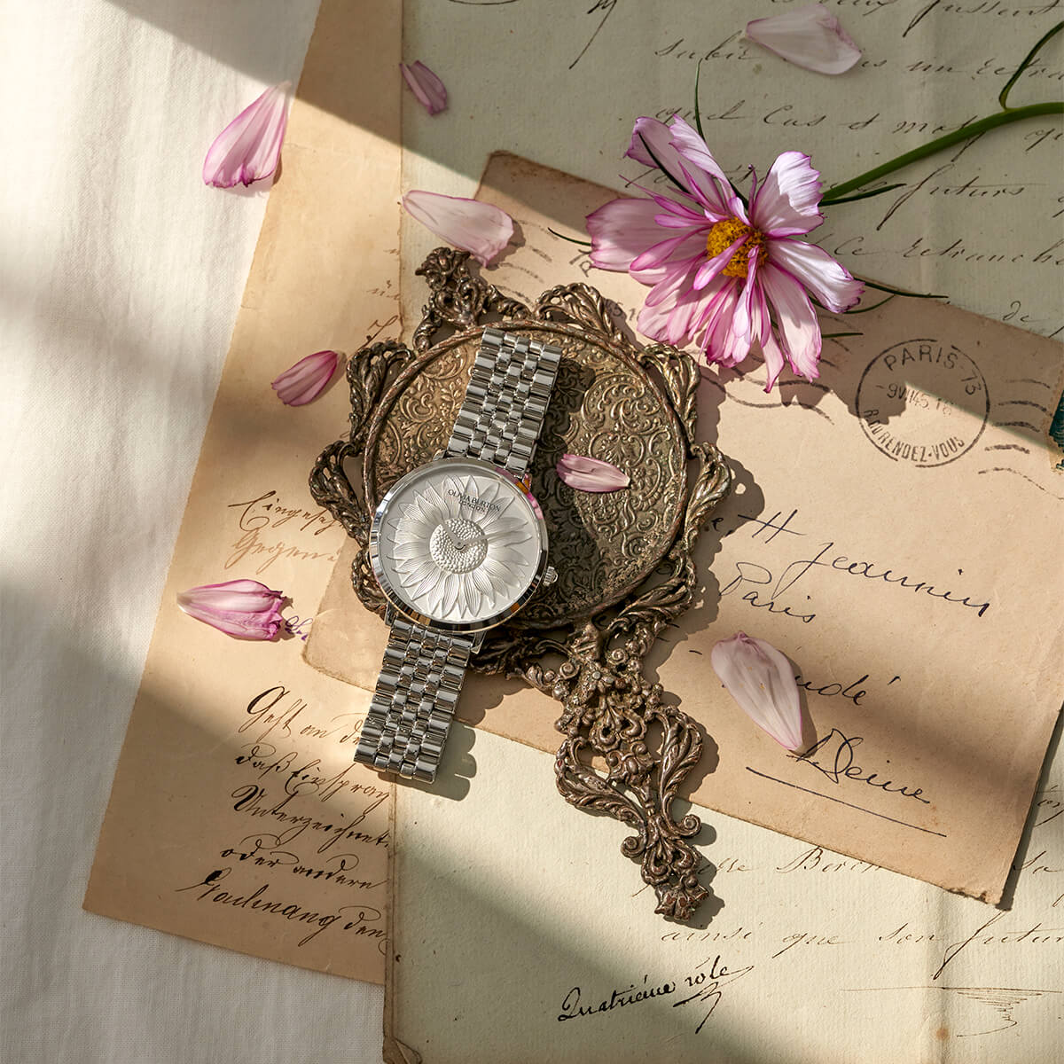 愛と忠実を象徴する立体的なフラワーモチーフウォッチ