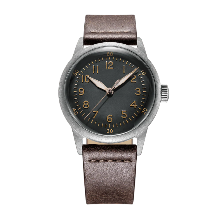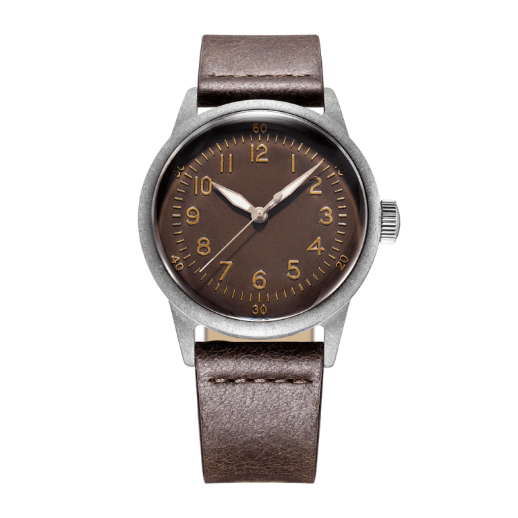 軍用時計の精神を現代に受け継ぐコレクション。38mmのグレード2チタンケースに、4時位置の統合リューズ、NH36自動巻ムーブメントを搭載し、42時間のパワーリザーブとデイデイト表示を備えた堅牢な設計。軽量で実用的なつくりは、過酷な環境でも頼れる相棒。