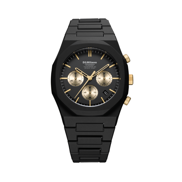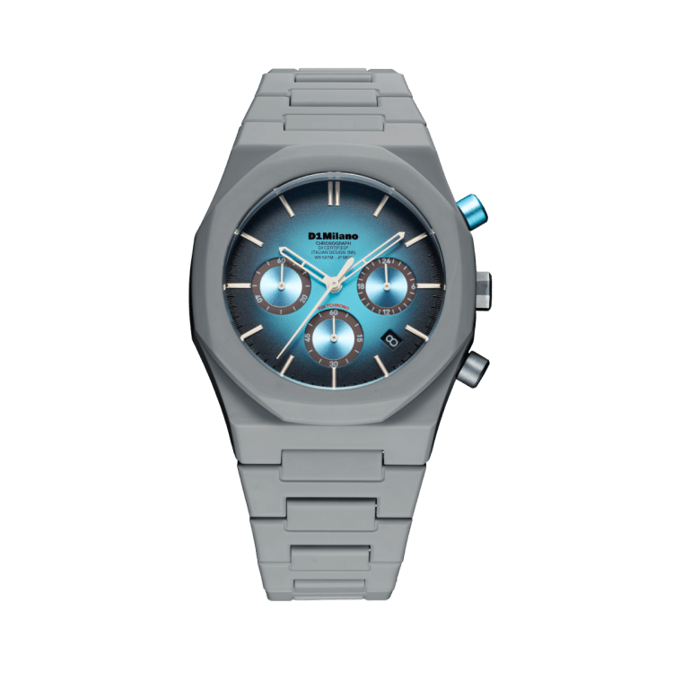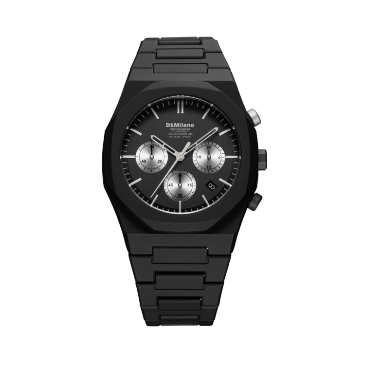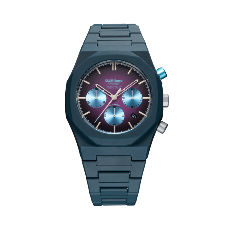 POLYCHRONOは、D1 Milanoの特徴であるミニマルデザインをベースに、クロノグラフ機能を搭載したスポーティなモデルです。ダイヤルにはクロノグラフ特有のサブダイヤルを配置しながらも、ブランドらしいクリーンなデザインバランスを保ち、ファッションウォッチとしての洗練された印象に仕上げています。スポーティでありながら日常のスタイリングにも取り入れやすく、カジュアルからストリートスタイルまで幅広いコーディネートに対応するモデルです。