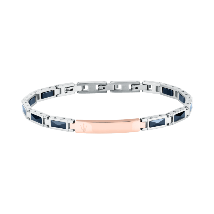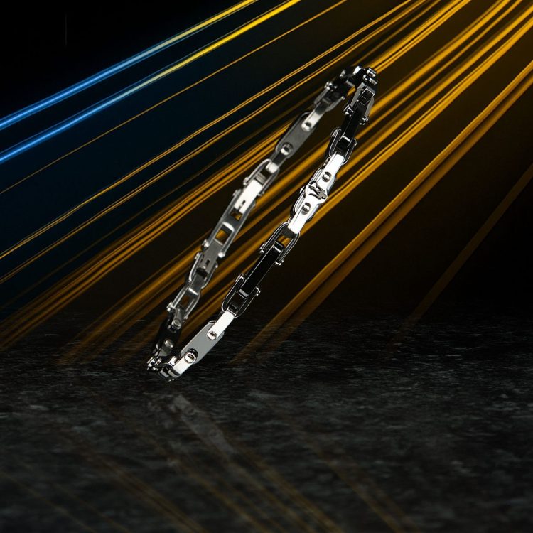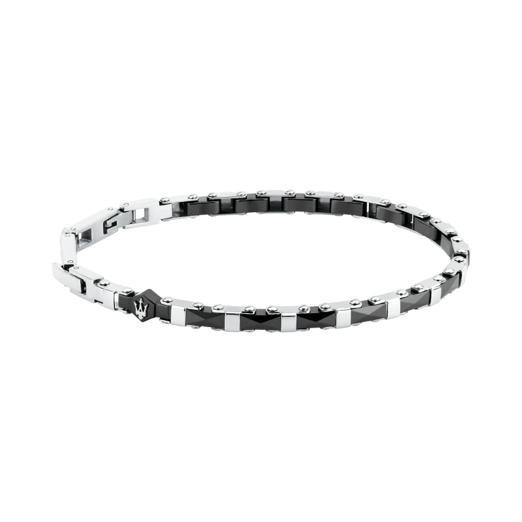 軽量で耐久性に優れたセラミックとステンレススチールを組み合わせ、ミニマルでありながら確かな存在感を放つブレスレットとして再構築されました。トライデントロゴをさりげなく配し、素材のコントラストでブランドの個性を引き立てます。