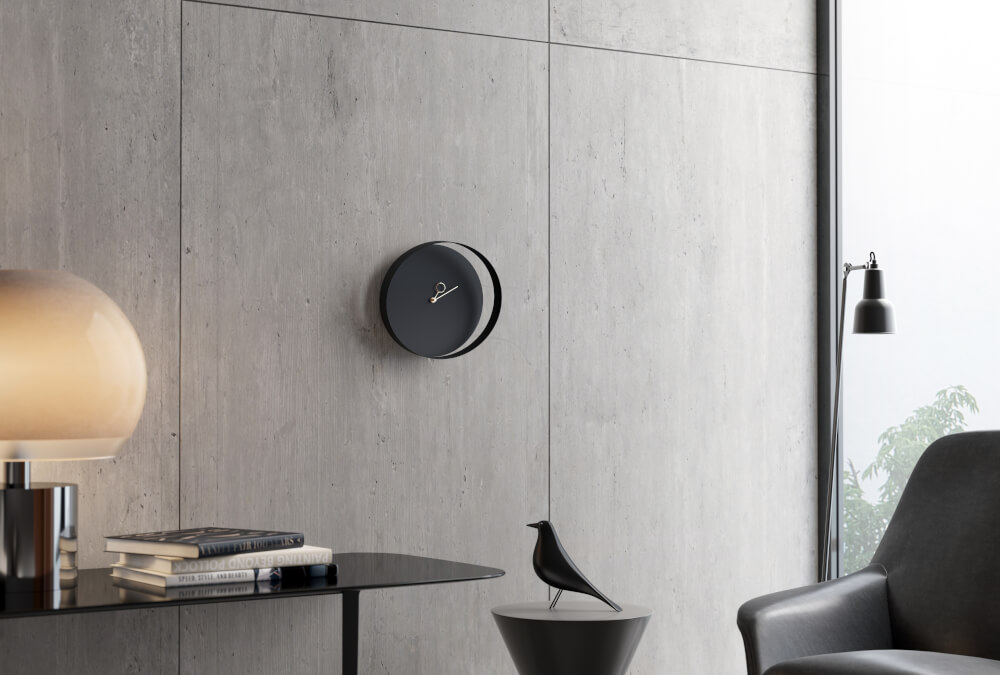 そんなデザインチームより誕生した、空間を遊ぶ装飾として設計された2つのミニマルなウォールクロックは、角、柱、棚に溶け込む様に設計された「Curvo Corner Clock(クルボ コーナー クロック)」と、立体的な吊り輪で顔を定義する彫刻的なデザインが特徴的な「Orbis Clock(オルビス クロック)」。