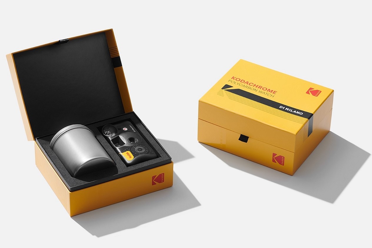 時計とカメラのコラボレーションを実現した2つの共通点は、『瞬間を捉える』事、そして物語を語る事で時間を表現する事から始まった。今回発売されるコラボウォッチ「KODACHROME Analong Watch Limited Edition(コダクローム アナログ ウォッチ リミテッド エディション)」は1935年に、米国イーストマン・コダック社によって作られた最初のカラーリバーサルフィルムからインスパイアされ、ヴィンテージかつクラシカルなカメラと、カメラフィルムがデザインの根源となっている。赤と黄色の文字盤と対照的な黒いボディはコダックのブランドアイコンでもあるトレードカラーを採用。遊び心を表現しながら、ディーワンミラノの人気シリーズ、ポリカーボンのボディをベースに2つのDNAが見事に調和され、より美しいデザインに仕上げられた。